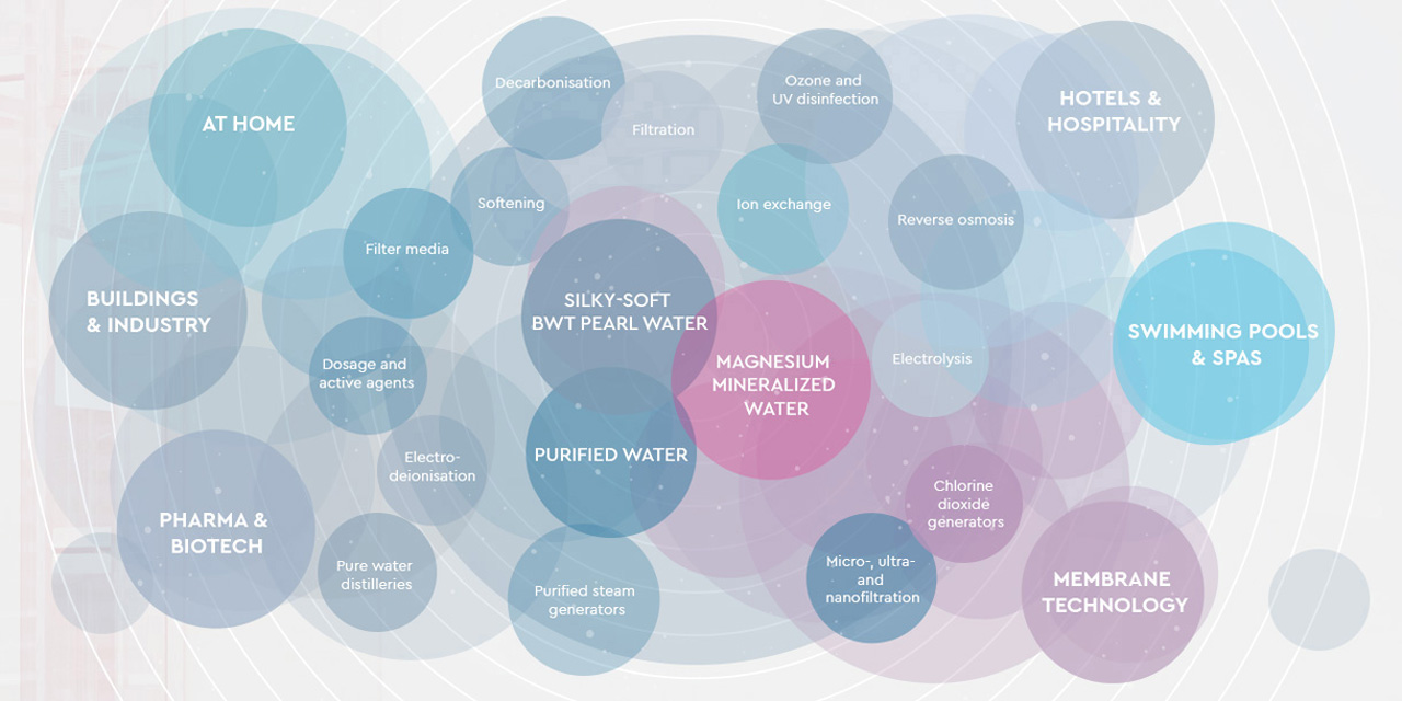 For decades, we've had but one goal in our sights: to improve the quality of people's lives wherever water is concerned – and to do so with custom-tailored water treatment solutions that deliver water of the highest quality. We don't restrict ourselves to standardised, of-the-shelf products, rather we're the ones who consistently set new standards in water technology. In keeping with our philosophy of "Feel – taste – see the difference", we offer our customers products with real innovations, such as drinking water with the extra enjoyment and vitality factor, silky-soft Pearl Water as a beauty elixir, or water in its purest form as an essential component of high-tech applications. Feel, taste and see the difference!